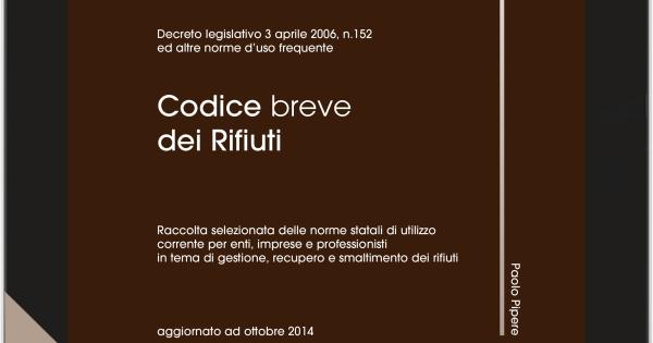 eBook Guida digitale consultabile da web, ma anche da qualsiasi ipad, smartphone, Android devices, etc etc. Contenuti. Raccolta completa e aggiornata della normativa vigente in materia di gestione dei rifiuti. Destinatari. Si tratta di una pubblicazione adatta per tutti gli operatori professionali del settore ambientale: consulenti, responsabili tecnici, funzionari pubblici, preposti e dirigenti, avvocati, organi di controllo: può essere consultata dove, quando e come si vuole! Il codice costituisce una raccolta completa e aggiornata della normativa vigente in materia di gestione dei rifiuti. Il quadro normativo di riferimento oggi vigente resta alquanto complesso e articolato: attorno a un nucleo centrale, costituito dalla parte quarta del d.lgs. n. 152/2006, permane quasi intatta una folta schiera di atti normativi di vario livello, sviluppatasi attraverso la produzione nel tempo di un numero crescente di provvedimenti “particolari” o “settoriali” e anche “trasversali”. Una raccolta selezionata della normativa vigente d’uso corrente è riportata in questa pubblicazione: • Decreto 5 febbraio 1998 Individuazione dei rifiuti non pericolosi sottoposti alle procedure semplificate di recupero ai sensi degli articoli 31 e 33 del decreto legislativo 5 febbraio 1997, n. 22 • Decreto ministeriale 1° aprile 1998, n. 145 Regolamento recante la definizione del modello e dei contenuti del formulario di accompagnamento dei rifiuti ai sensi degli articoli 15, 18, comma 2, lettera e), e comma 4, del decreto legislativo 5 febbraio 1997, n. 22 • Decreto ministeriale 1° aprile 1998, n. 148 Regolamento recante approvazione del modello dei registri di carico e scarico dei rifiuti ai sensi degli articoli 12, 18, comma 2, lettera m), e 18, comma 4, del decreto legislativo 5 febbraio 1997, n. 22 • Decreto ministeriale 12 giugno 2002, n. 161 Regolamento attuativo degli articoli 31 e 33 del decreto legislativo 5 febbraio 1997, n. 22, relativo all’individuazione dei rifiuti pericolosi che è possibile ammettere alle procedure semplificate • Decreto legislativo 13 gennaio 2003, n. 36 Attuazione della direttiva 1999/31/CE relativa alle discariche di rifiuti • Decreto legislativo 11 maggio 2005, n. 133 Attuazione della direttiva 2000/76/CE in materia di incenerimento dei rifiuti • Decreto ministeriale 27 settembre 2010 Definizione dei criteri di ammissibilità dei rifiuti in discarica in sostituzione di quelli contenuti nel decreto del ministro dell’ambiente e della tutela del territorio 3 agosto 2005 • Decreto ministeriale 18 febbraio 2011, n. 52 Regolamento recante istituzione del sistema di controllo della tracciabilità dei rifiuti, ai sensi dell’articolo 189 del decreto legislativo 3 aprile 2006, n. 152 e dell’articolo 14-bis del decreto-legge 1° luglio 2009, n. 78, convertito, con modificazioni, dalla legge 3 agosto 2009, n. 102 • Decreto legge 31 agosto 2013, n. 101 convertito in legge, con modificazioni, dalla legge 30 ottobre 2013, n. 125 Disposizioni urgenti per il perseguimento di obiettivi di razionalizzazione nelle pubbliche amministrazioni. • Decreto legislativo 14 marzo 2014, n. 49 Attuazione della direttiva 2012/19/UE sui rifiuti di apparecchiature elettriche ed elettroniche (RAEE) • Decreto ministeriale 24 aprile 2014 Disciplina delle modalità di applicazione a regime del sistri del trasporto intermodale nonché specificazione delle categorie di soggetti obbligati ad aderire, ex articolo 188-ter, comma 1 e 3 del decreto legislativo n. 152 del 2006 • Decreto ministeriale 3 giugno 2014 Regolamento per la definizione delle attribuzioni e delle modalità di organizzazione dell'albo nazionale dei gestori ambientali, dei requisiti tecnici e finanziari delle imprese e dei responsabili tecnici, dei termini e delle modalità di iscrizione e dei relativi diritti annuali >> Visualizza sommario